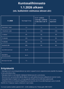 - Kuntosalimaksut ja maksuttomat/alennetut kortit 1.2.2025 alkaen(pdf)